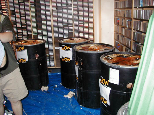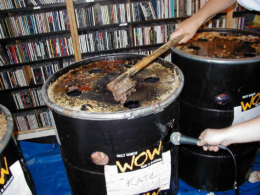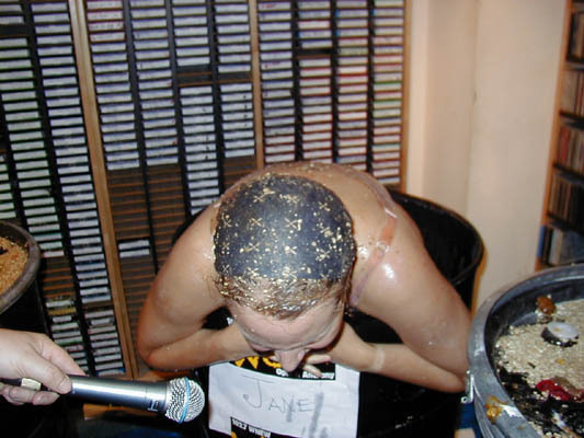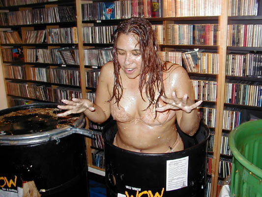 The55 Gallon Drum Challenge was a once-a-year event during the WNEW days in which women were sealed in a plastic 55 gallon drum and had all types of disgusting things dumped all over them, such as fish, cockroaches, bad milk, etc. The woman who stayed in the drum the longest was the winner.